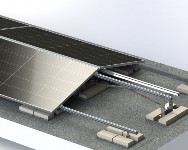 SUNSYSTEM TPO-EW e баластна монтажна система, предназначена за плоски мембранни покриви. Модулите са с ориентация изток-запад и ъгъл на наклон 5, 10 или 15 градуса. Баластните системи за мембранен покрив осигуряват безопасен и издръжлив монтаж на фотоволтаичните модули. Закрепването на системата се осъществява посредством метални планки, които се фиксират към мембранния покрив с помощта на допълнително парче мембрана. В допълнение се поставят баласти върху плочата, за да се гарантира максималната устойчивост срещу неблагоприятни метеорологични условия. Модулите се дистанцират на достатъчно разстояние от мембраната благодарение на достатъчната височина на алуминиевия профил.
